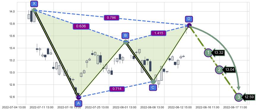 ➣ 【仅预测突破】最后价格:13.77与预测突破价格:12.59→【空间较大】后续最小【反转】第一目标价格→(08-22:13: 11.57 )