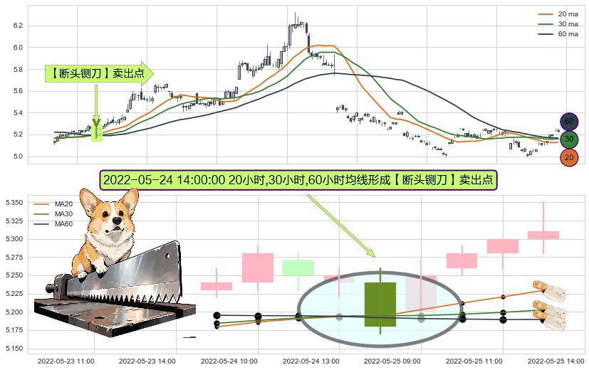 ⚀ 2022-05-24 14:00:00小时显现 20小时-30小时-60小时均线 【断头铡刀】卖出点 看空信号,后市看跌,卖出