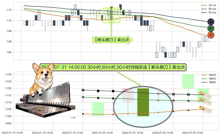 ⚀ 2022-07-21 14:00:00小时显现 30小时-60小时-90小时均线 【断头铡刀】卖出点 看空信号,后市看跌,卖出