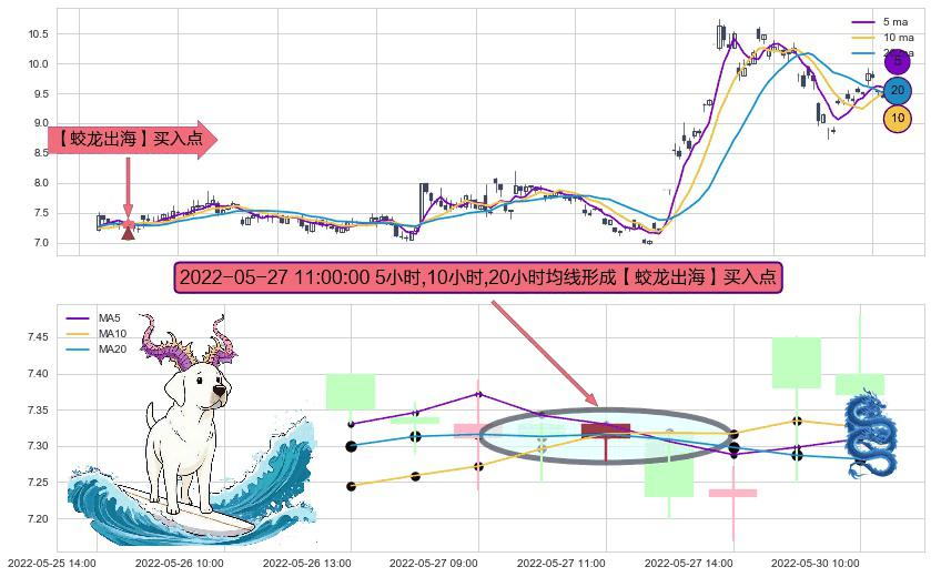 形态多维评估: ⚀ 2022-05-27 11:00:00小时显现 5小时-10小时-20小时均线 【蛟龙出海】买入点 看多信号,后市看涨,买入