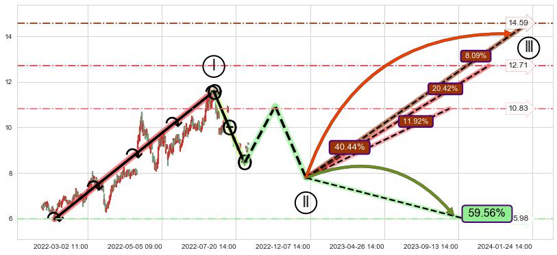 ➢ AI预测: 假定反转如期而至,第❶价格目标位置(08-23:13, 9.63)