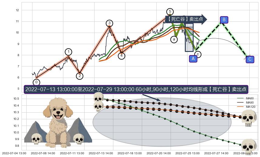 | 2 🅚:【绝命跳】卖出点 ➕ 🌊:波浪理论猜想上涨浪5已形成,猜想后续形成回调abc下跌(均值回复) ☞ 看空信号 ⇥ 【均线】交织【图形】⇥ 综合量化分数: 47 | > |