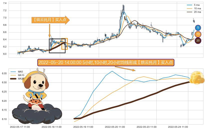⚀ 2022-05-18 14:00:00小时-2022-05-24 13:00:00小时显现 5小时-10小时-20小时均线 【烘云托月】买入点 看多信号,后市看涨,买入