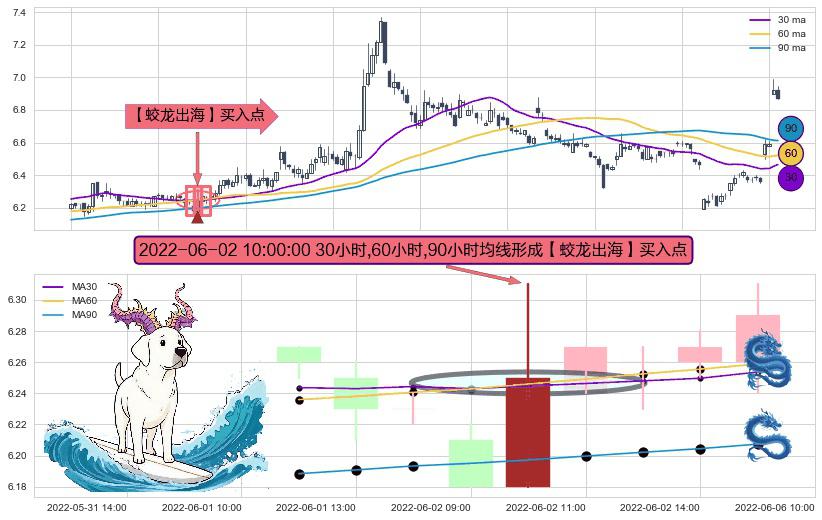 ⚀ 2022-06-02 10:00:00小时显现 30小时-60小时-90小时均线 【蛟龙出海】买入点 看多信号,后市看涨,买入