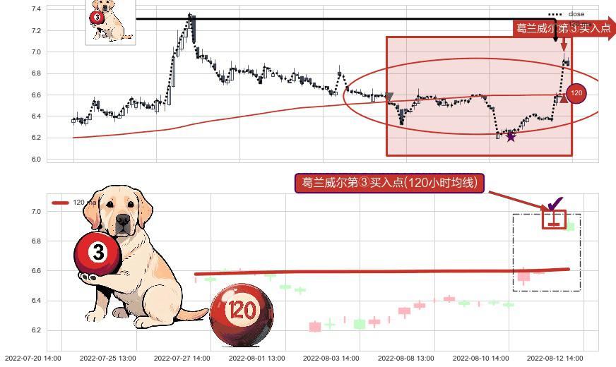 ⚀ 2022-08-12 13:00:00-小时显现 葛兰威尔均线 120小时均线 第③买入点 上升趋势的中继信号,后市看涨,买进信号