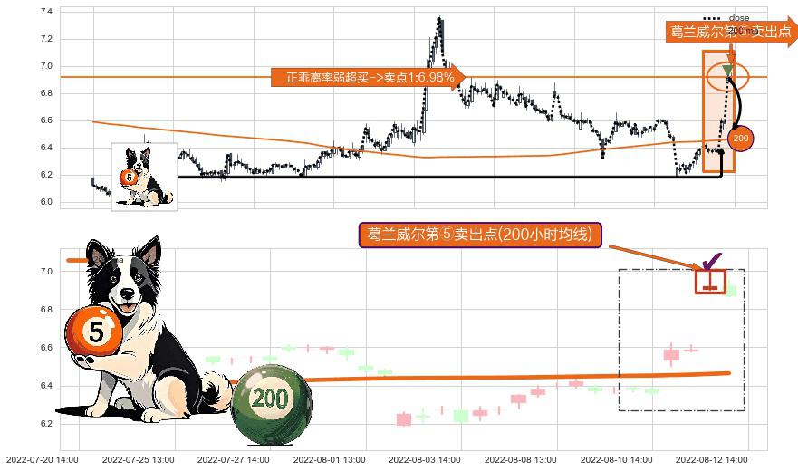⚀ 2022-08-12 13:00:00-小时显现 葛兰威尔均线 200小时均线 第⑤卖出点 上升趋势均值回复的短线回落信号,后市看跌,卖出信号
