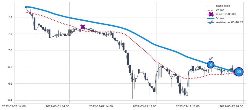 ⚂ 2022-07-14 13:00:00-小时均线向下破位,2022-08-12 13:00:00-小时重新上穿突破均线,均线支撑再次生效
