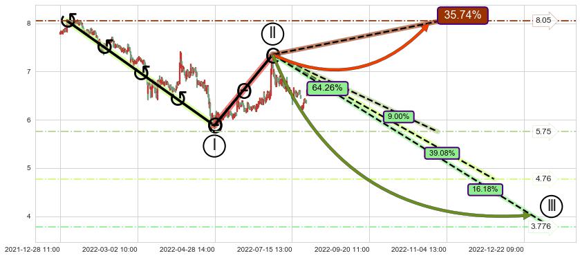 ➢ 循环浪继续向下【最低】位置(01-06:13, 3.776),匹配聚类样本比例25.18%, 可能性概率16.18%