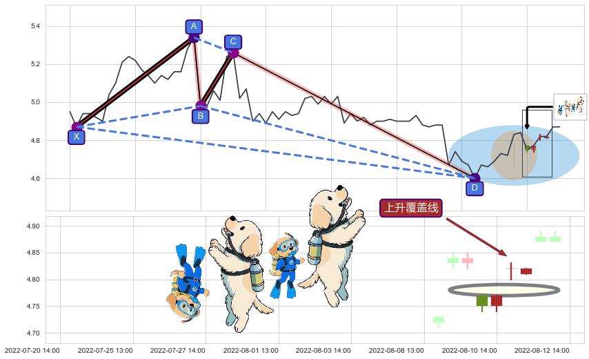 ➣ 已完成【蝴蝶】形态起点X: 06-22:14, 终点D: 08-04:13, 共62交易小时