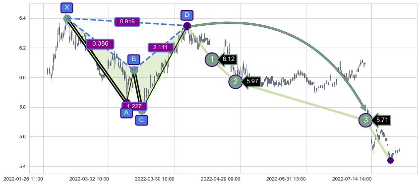 ➣ 已完成【赛福】形态起点X: 02-11:11, 终点D: 04-06:14, 共184交易小时
