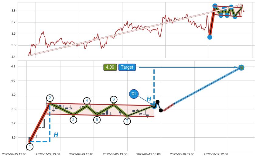 ➢ AI预测: 假定反转如期而至,第❶价格目标位置(08-18:12, 3.682)