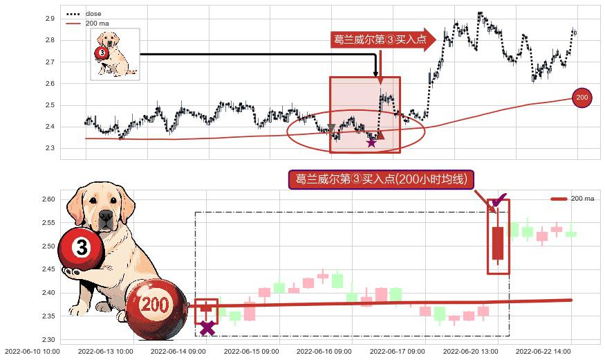 ⚀ 2022-06-20 13:00:00-小时显现 葛兰威尔均线 200小时均线 第③买入点 上升趋势的中继信号,后市看涨,买进信号