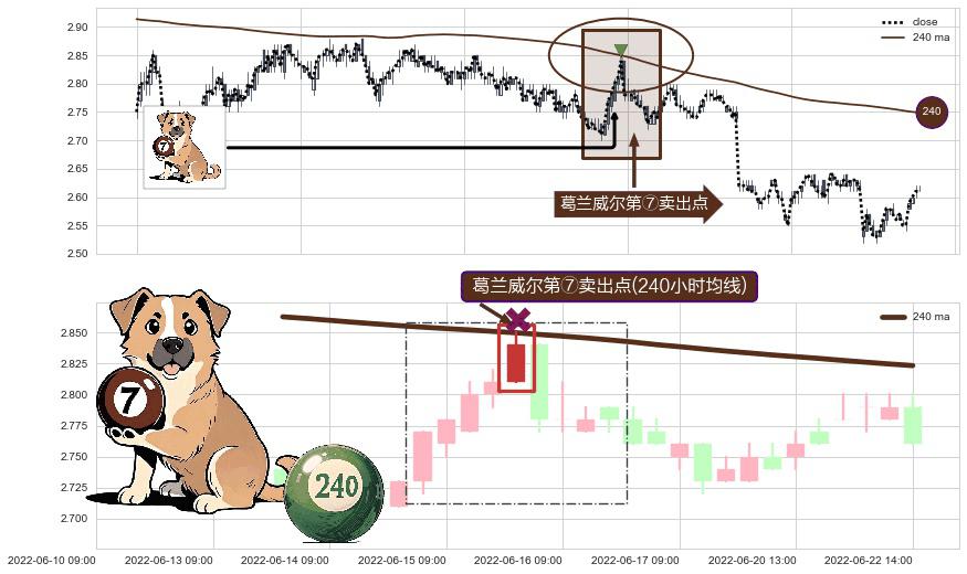 ⚁ 240小时均线 第⑦卖出点 属于 均线服从 信号,属于趋势运行的【常态】即信号期望为下降趋势的中继