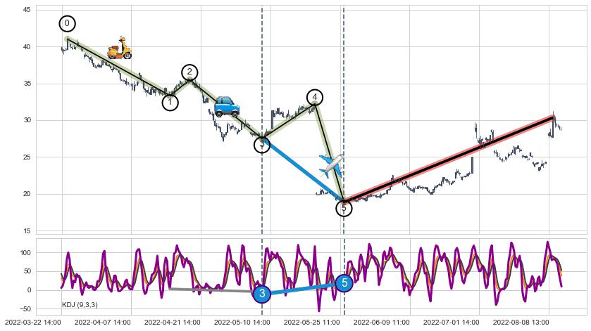 | 9 🅚:下跌两颗星 | 下跌三颗星 ➕ 🌊:波浪理论下跌5浪延续:猜想C点强阻力小反弹终止,猜想保持下跌5浪方向下行(均值回复后大周期继续趋势跟踪) ☞ 看空信号 ⇥ 【🅚线】交织【图形】⇥ 综合量化分数: 47 | > |
