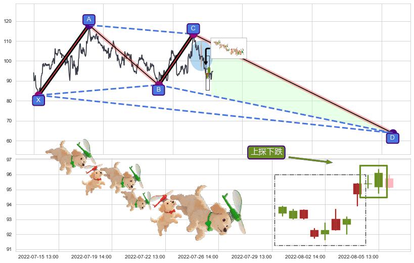 ➣ 已完成【蝙蝠】形态起点X: 02-11:13, 终点D: 05-26:13, 共346交易小时