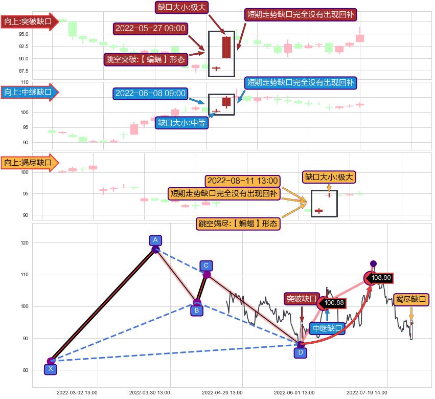 ➢ 2022-08-11 13:00形成:向上跳空【竭尽】缺口