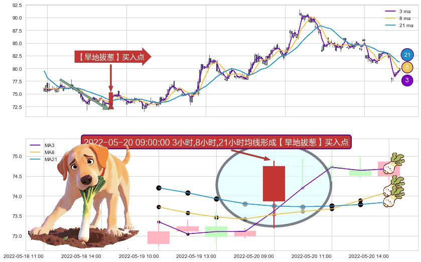 ⚀ 2022-05-20 09:00:00小时显现 3小时-8小时-21小时均线 【旱地拔葱】买入点 看多信号,后市看涨,买入