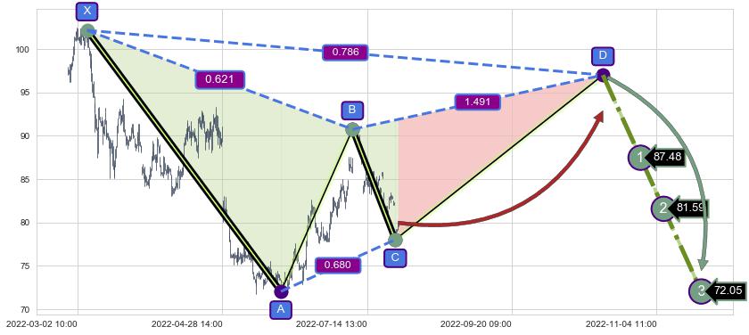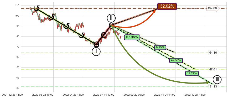 ➣ D点拟合预测价格97.01,距离最后交易收盘价格79.98相差 +21.30%