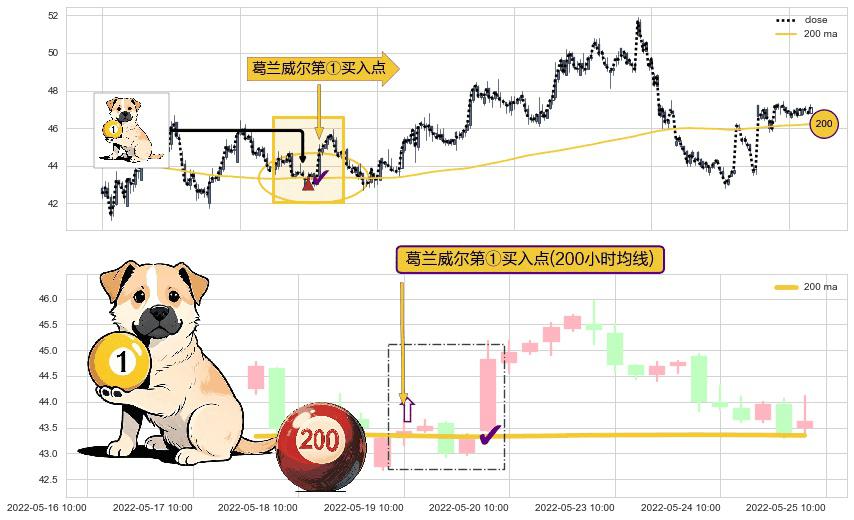 ⚀ 2022-05-19 10:00:00-小时显现 葛兰威尔均线 200小时均线 第买①入点 走势反转见底信号,后市看涨,买进信号