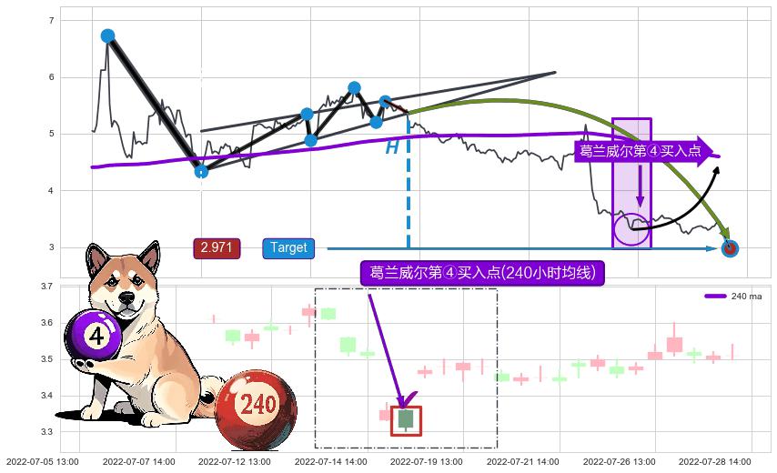 2022-06-22: 第一阻力位4.32有效抑制了下跌浪,成功阻止了价格的继续下跌。