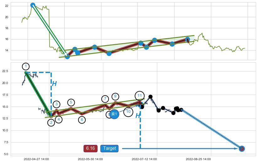 ➣ 最小中继整理跌幅→𝐇: 9.31 (𝐇旗杆的长度:旗杆起点→顶点)