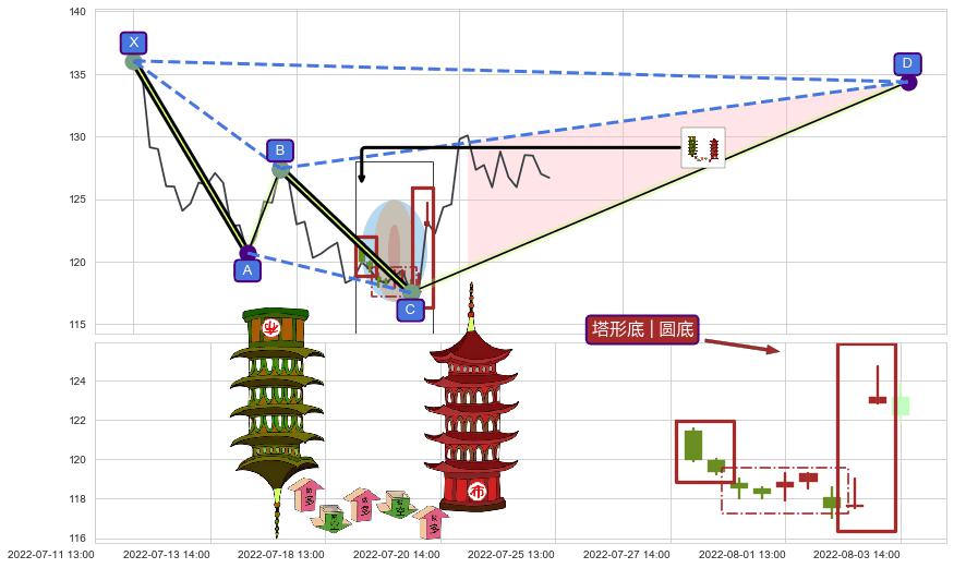➣ D点拟合预测价格134.35,距离最后交易收盘价格126.70相差 +6.04%
