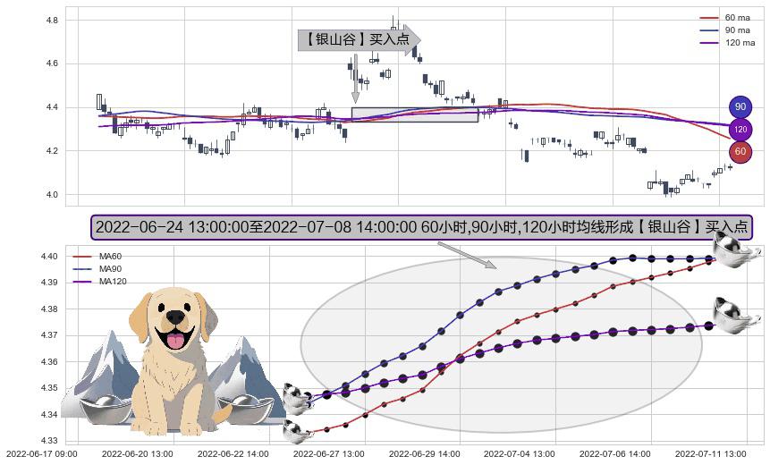 ⚀ 2022-06-24 14:00:00-小时至2022-07-08 14:00:00-小时显现 60小时-90小时-120小时均线 【银山谷】买入点 看多信号,后市看涨,买入