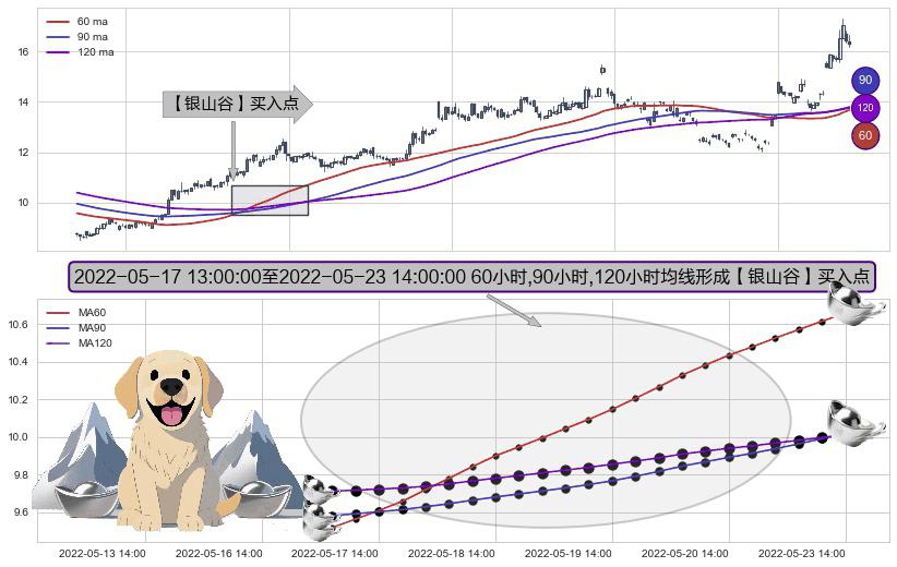 ⚀ 2022-05-17 14:00:00-小时至2022-05-23 14:00:00-小时显现 60小时-90小时-120小时均线 【银山谷】买入点 看多信号,后市看涨,买入