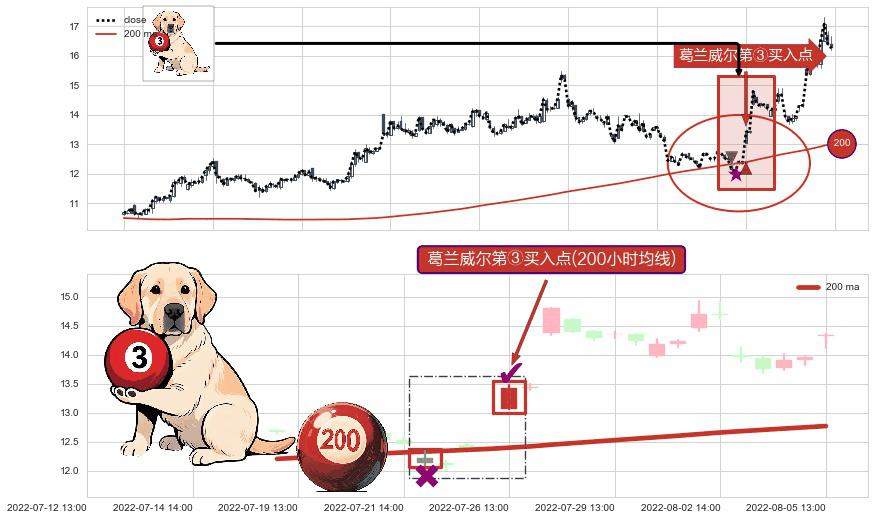⚀ 2022-07-26 13:00:00-小时显现 葛兰威尔均线 200小时均线 第③买入点 上升趋势的中继信号,后市看涨,买进信号