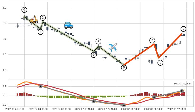 ➣ a,c调整浪MACD走势未出现明显背离