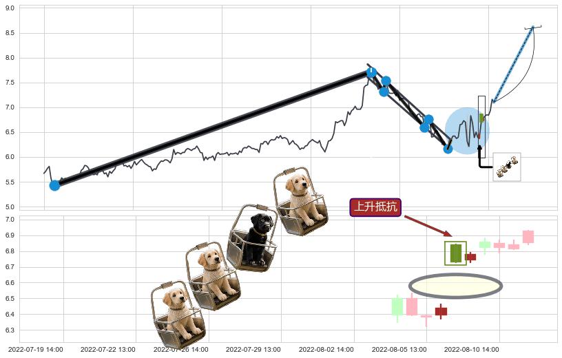 ♘ 阻力价格位7.64,可信任强度79.43%,距离最后交易2022-08-12 14:00形成的收盘价格7.10相差 +7.57%