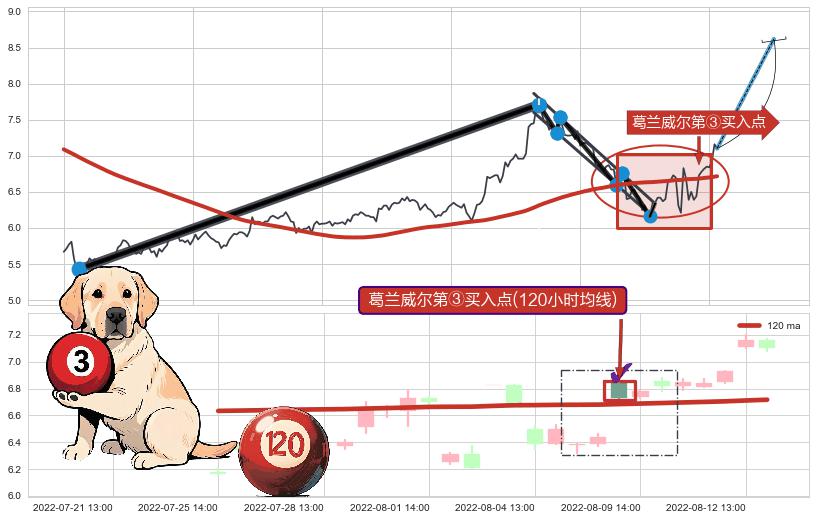 ➢ 收盘价(08-02:14: 6.21 )→回踩→第一根k线高点(07-28:14: 6.42 )