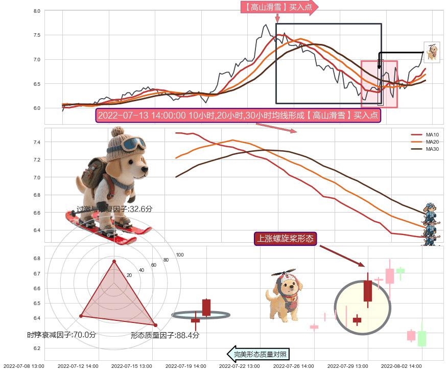 | 3 🅚:【高山滑雪】买入点 ➕ 📐:降旗形向上突破击穿阻力位, 猜想持续拉升上涨,被突破的阻力位已变为支撑位 ☞ 看多信号 ⇥ 【均线】交织【图形】⇥ 综合量化分数: 71 | > |