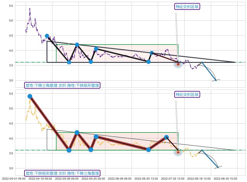 ♘ 在最后的下跌阶段2022-04-06 13:00至2022-08-12 13:00,存在 持续未破位的阻力位 ,阻力价格3.701,可信任强度84.56%,其距离最后价格3.500相差 +5.75%