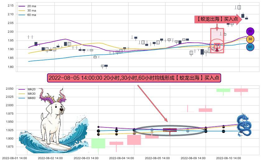 ⚀ 2022-08-05 14:00:00小时显现 20小时-30小时-60小时均线 【蛟龙出海】买入点 看多信号,后市看涨,买入