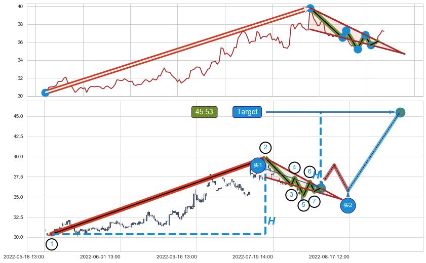 ➢ 最小中继整理涨幅→𝐇: 9.43 (𝐇楔型旗杆的长度:楔型起点→顶点)