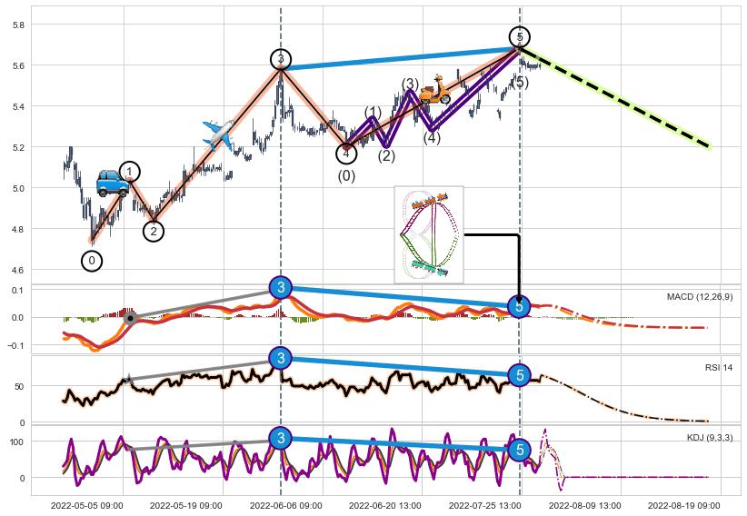 ➢ 1,3,5驱动浪MACD, RSI, KDJ走势都出现【常规背离】反转信号增强