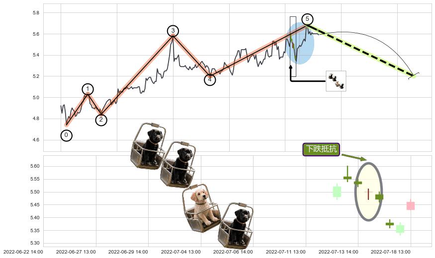 ➣ 收盘价(07-18:14: 5.47 )→回踩→第一根k线低点(07-14:14: 5.46 )