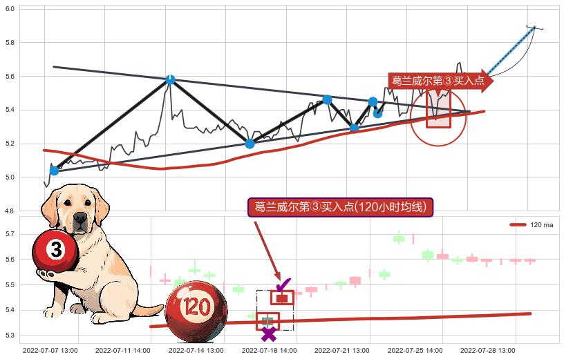 ➣ 收盘价(07-25:13: 5.60 )→回踩→第二根k线低点(07-22:13: 5.66 )