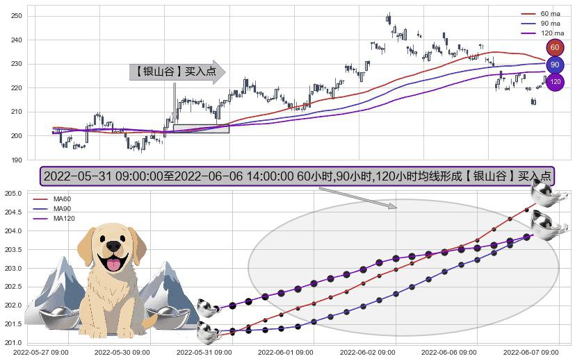 ⚂ 【银山谷】买入点 由MA60均线上穿MA90均线和MA120均线,MA90均线上穿MA120均线形成