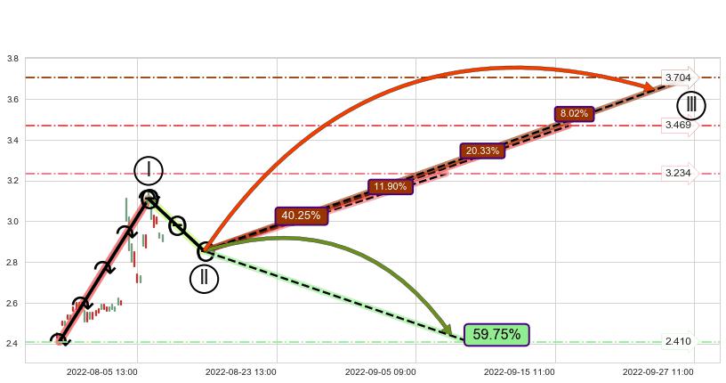 ➢ 循环浪继续向上【最低】位置(09-06:14, 3.234),匹配聚类样本比例29.57%, 可能性概率11.90%