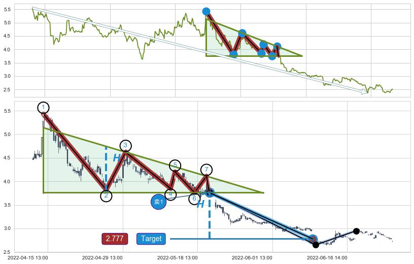 ➢ 【已达成】最小【整理】第一目标价格→(06-10:09: 2.777 ), 后续继续【整理】下跌动力依然存在,下跌空间适中