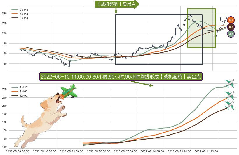 ⚀ 2022-05-23 09:00:00小时-2022-07-15 13:00:00小时显现 30小时-60小时-90小时均线 【战机起航】卖出点 看空信号,后市看跌,卖出