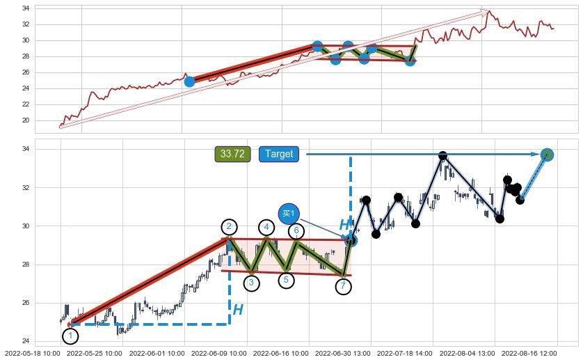 ➣ 最小中继整理涨幅→𝐇: 4.47 (𝐇旗杆的长度:旗杆起点→顶点)