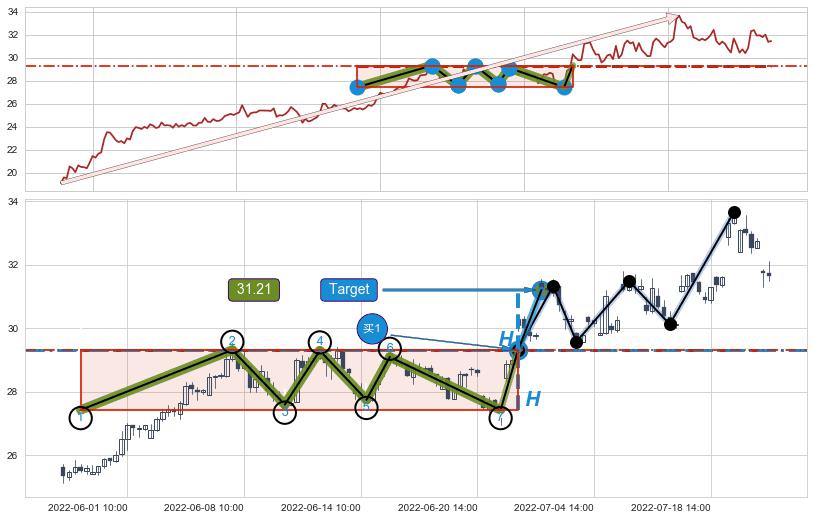 ➢ 【买1】: 激进型 买点 →(06-24:13: 29.32 )形成突破上涨矩形整理【整理】形态