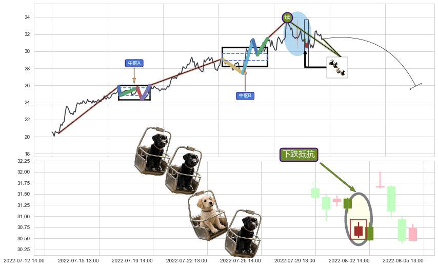🍖 长线趋势跟踪组合短线均值回复[强支撑信号]2022-04-27 09:00-2022-08-04 14:00上升趋势依然成立(上涨趋势跟踪依然可行),短线价格略微下行回调(均值回复猜想),即将接近趋势提供的未破位的支撑价格:30.86。