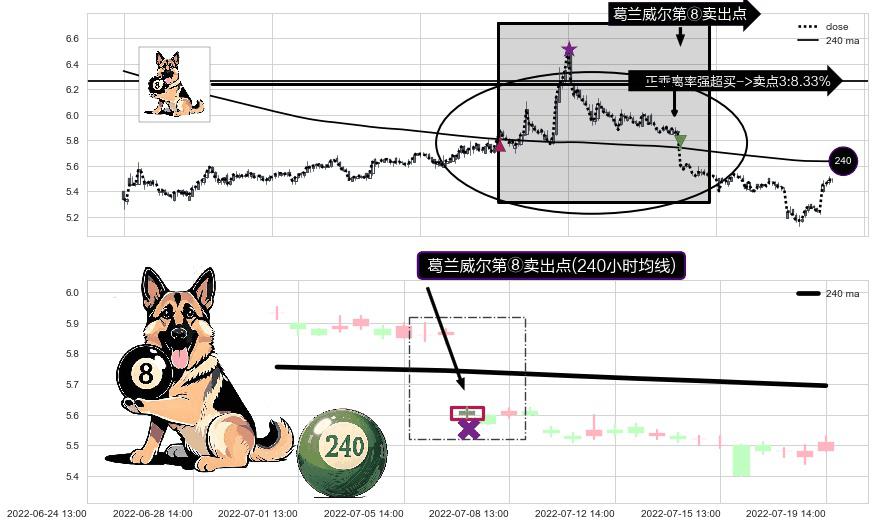 ⚀ 2022-07-07 13:00:00-小时显现 葛兰威尔均线 240小时均线 第⑧卖出点 下降趋势的中继信号,后市看跌,卖出信号