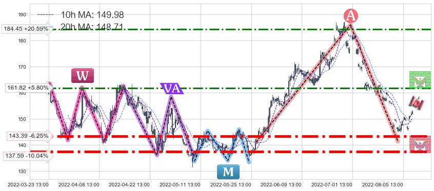 ♘ 阻力价格位161.82,可信任强度69.42%,距离最后交易2022-08-12 14:00形成的收盘价格152.95相差 +5.80%