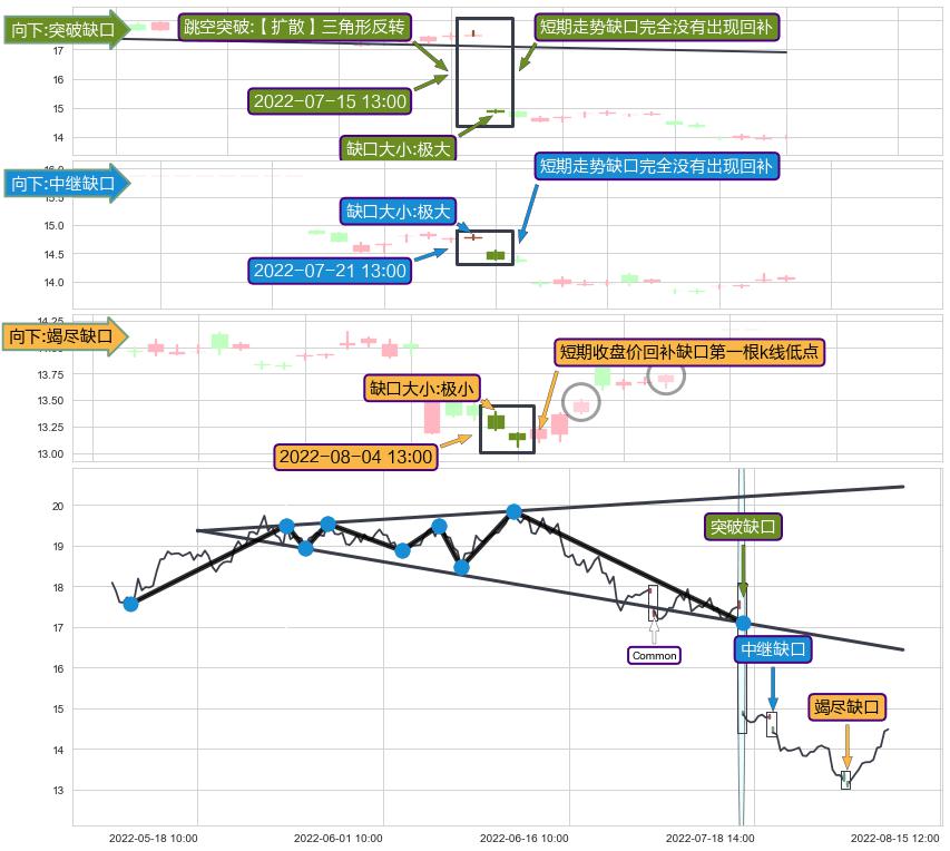➢ 2022-08-04 13:00形成:向下跳空【竭尽】缺口
