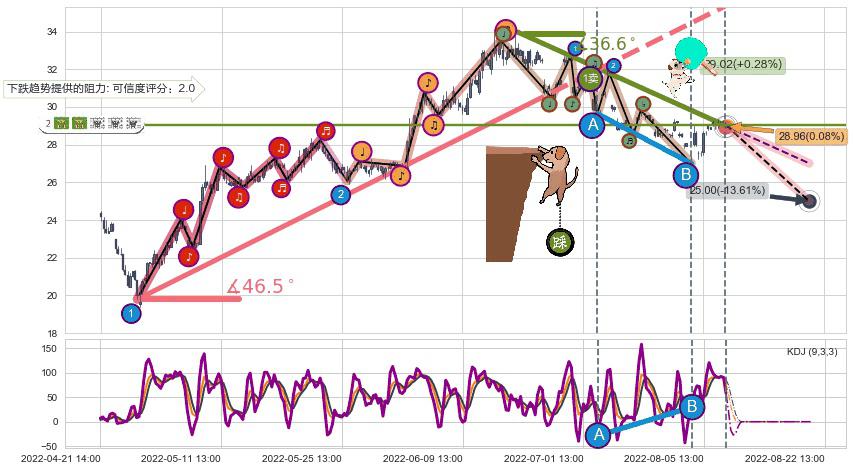 ♘ 阻力价格位33.20,可信任强度73.03%,距离最后交易2022-08-12 14:00形成的收盘价格28.94相差 +14.71%